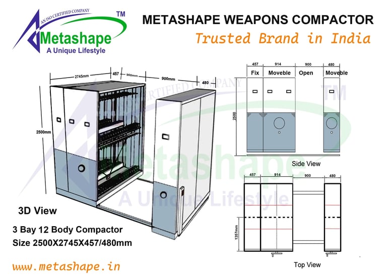 We specialize in manufacturing durable weapon compactors tailored for Indian industries. Metashape Works India Pvt. Ltd. is a trusted manufacturer of advanced weapon compactors designed for secure, organized, and space-efficient armory storage.